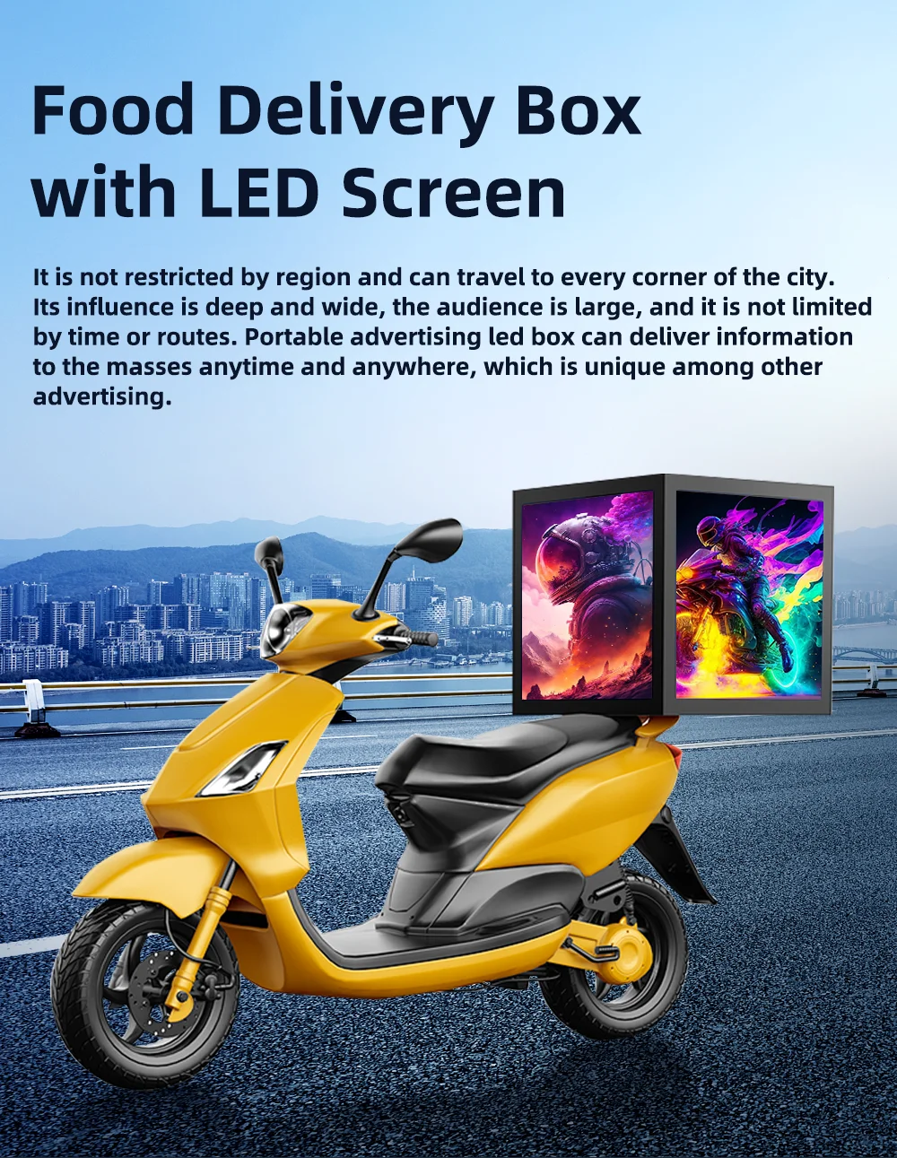 P2.5mm P3mm Maßanfertigung Werbung Takeaway LED-Box Motorrad Motorrad Lebensmittellieferungsbox LED-Anzeigebildschirm