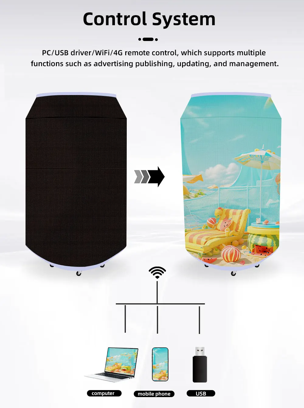 Kreative flexible Getränkedosen mit LED-Bildschirm für In- und Outdoor, Ringzieh-Bierflaschen-Dose mit LED-Display HD anpassbar